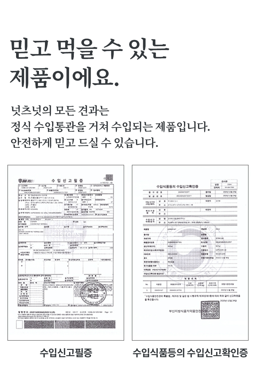 #A등급 견과 100% #네이버 고급 견과류 1위 #리뷰 만족도 99% #수입신고 완료 정품