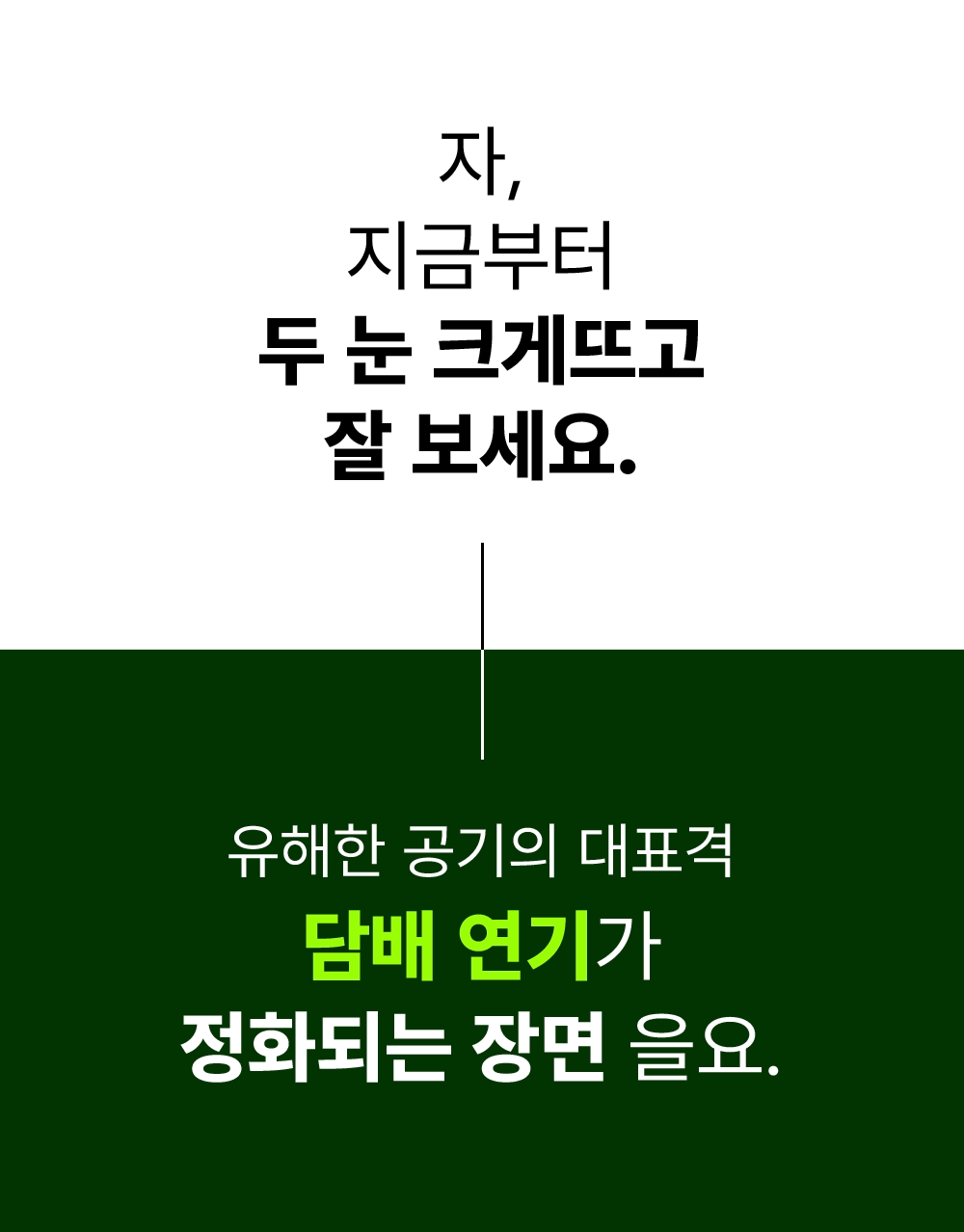 A 산속에 가면 미세먼지나 꽃가루가 거의 없습니다. 이는 나무에서 나오는 음이온이 공기보다 가벼운 먼지와 결합하여 공기보다 무겁게 하여 바닥에 떨어지면서, 공기를 청정시켜 줍니다. 이는 과학적으로 입증이 된 사실로, 자사 제품도 과정만 다르지 음이온이라는 결과물이 동일하여 같은 원리로 공기를 청정시켜줍니다. 또한 일본의 전문기관을 통하여 pm2.5와 pm10 미세먼지가 제거되는 것을 입증하였습니다.