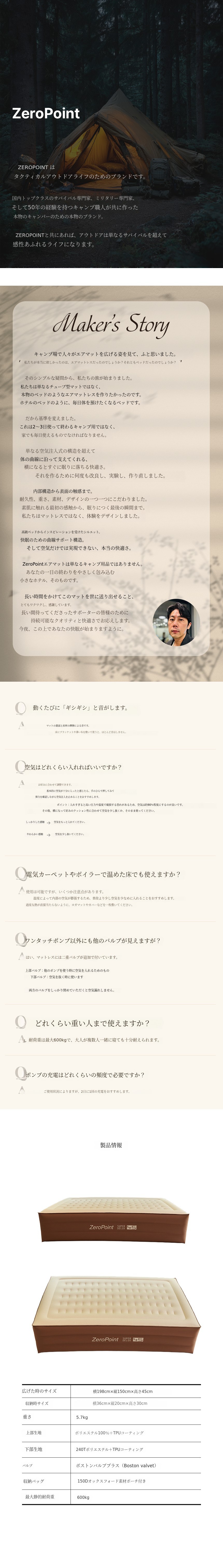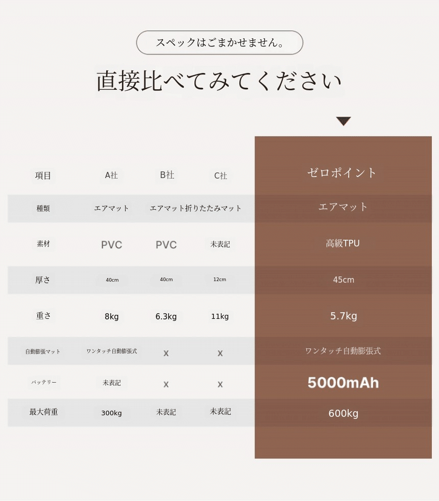 唯一、私たちゼロポイントエアマットレスだけがこのスペックを実現しました。