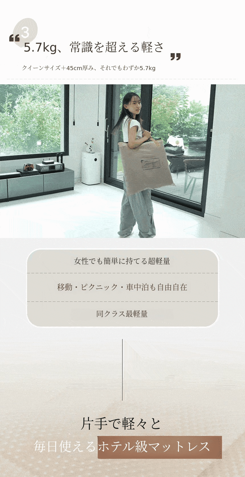 この厚さでクイーンサイズの重さが5.8KG(史上最軽量!)