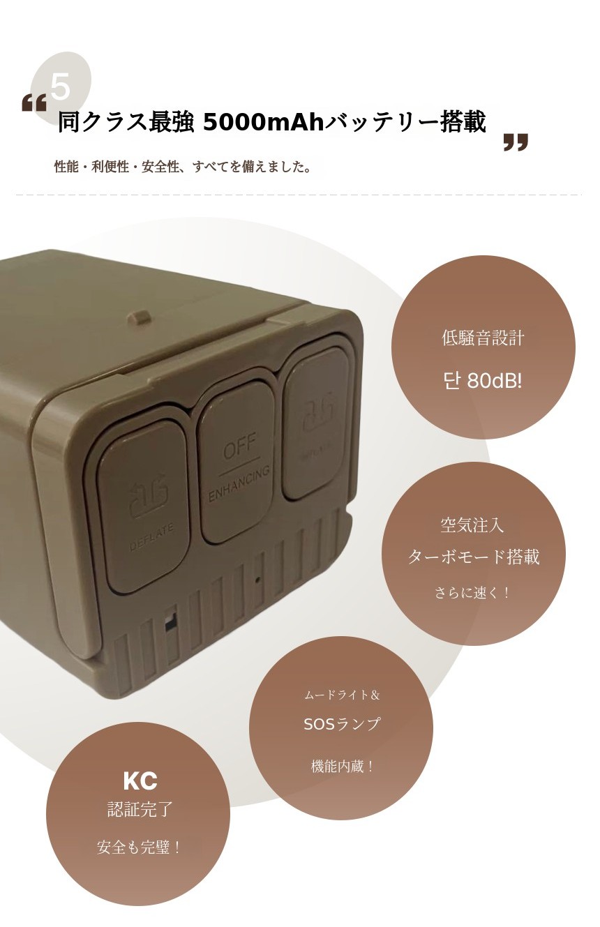ポンプバッテリースペックはなんと5,000mAf(現時点で最大容量)