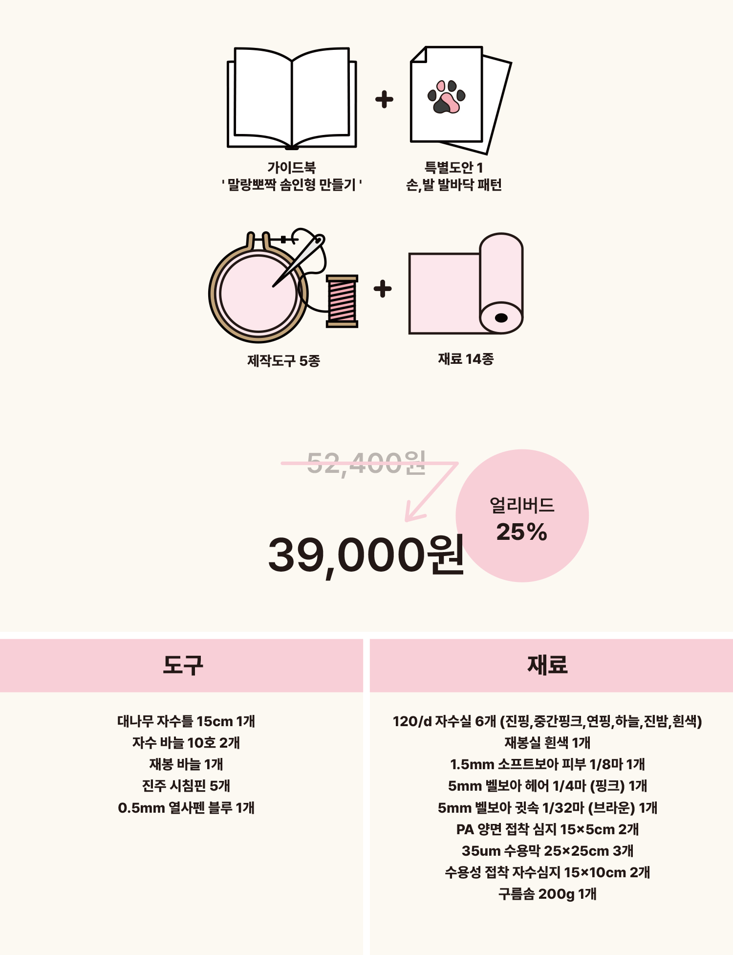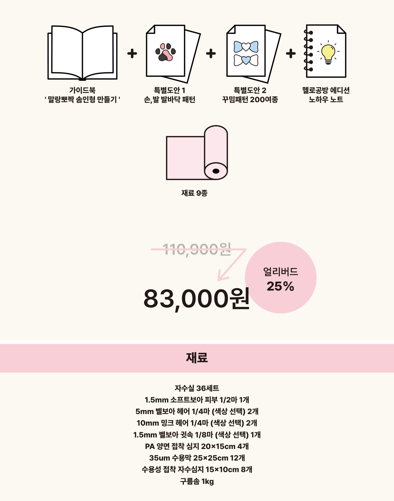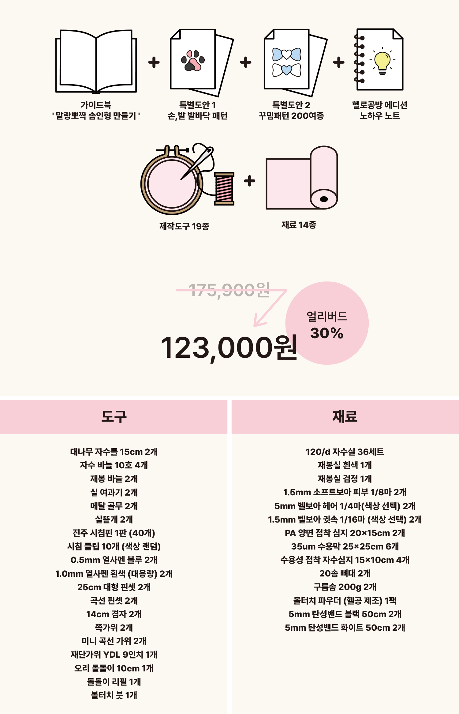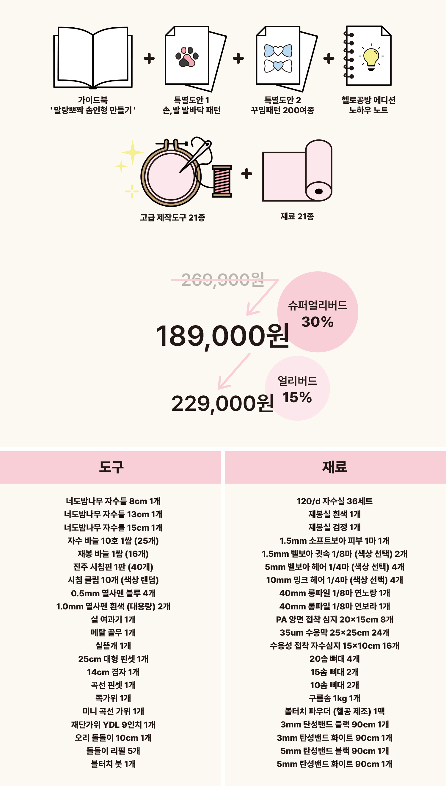 가이드북에 맞춰 필요한 재료와 도구를 패키지로 준비했다는 점입니다.