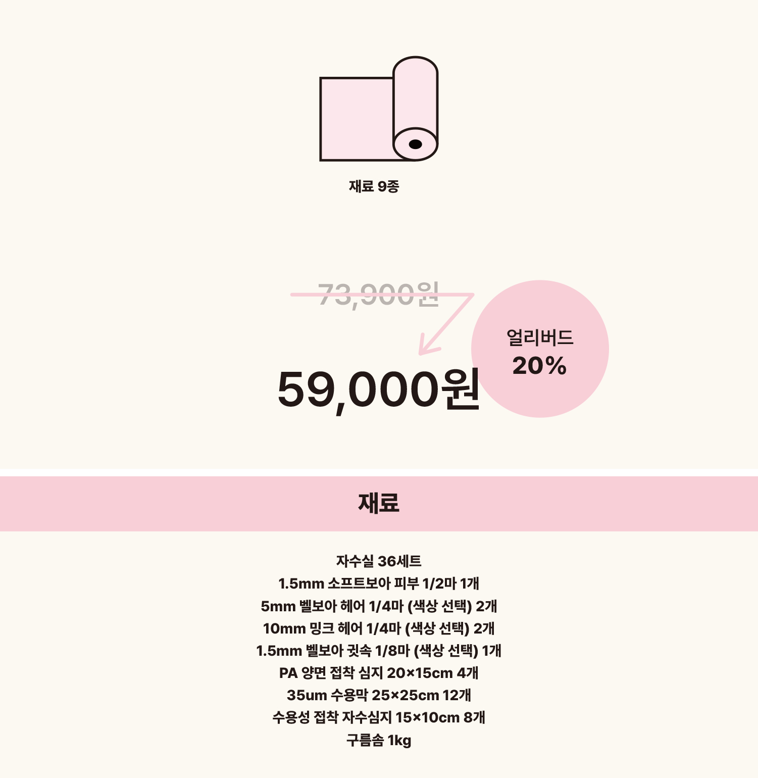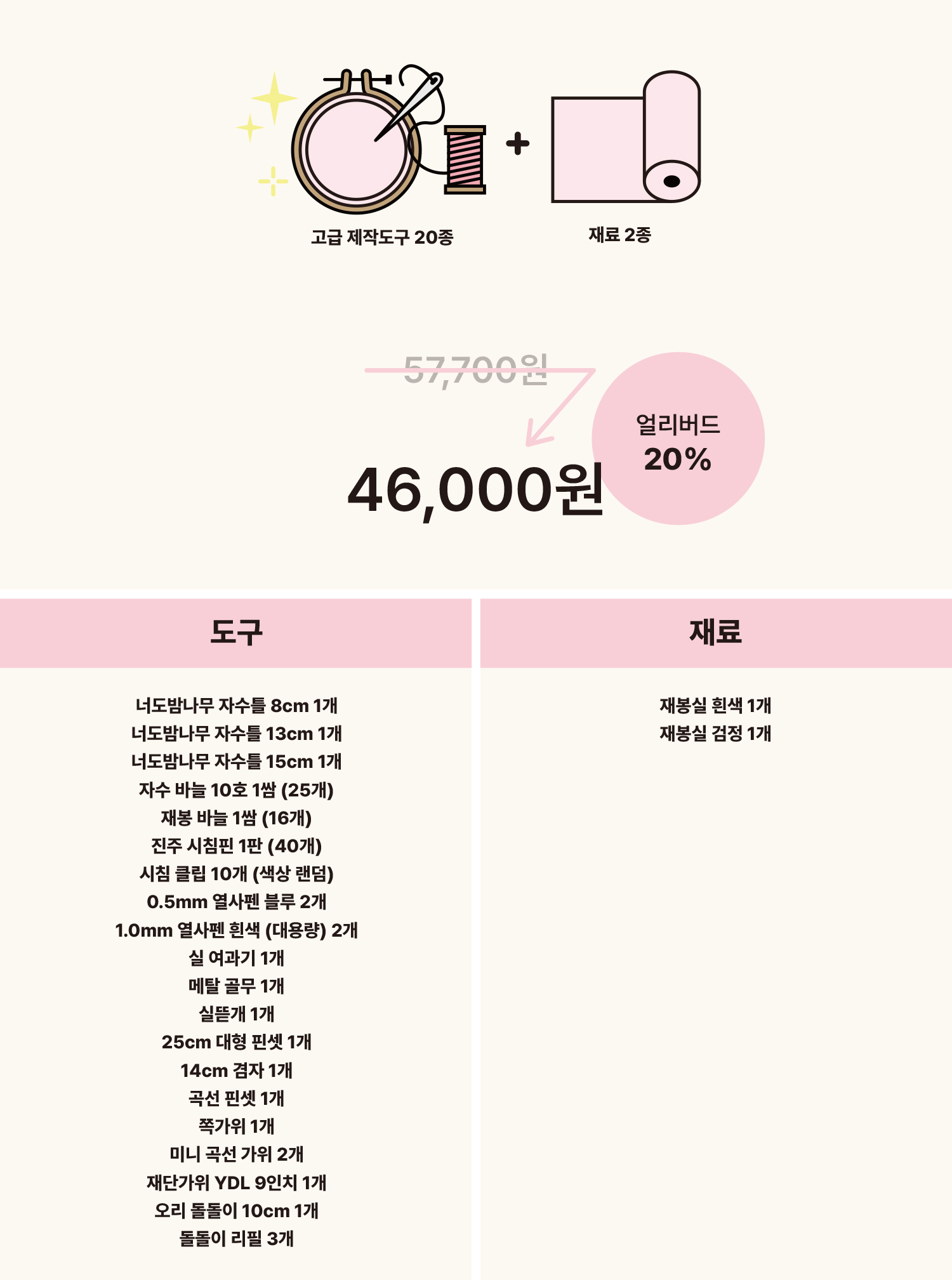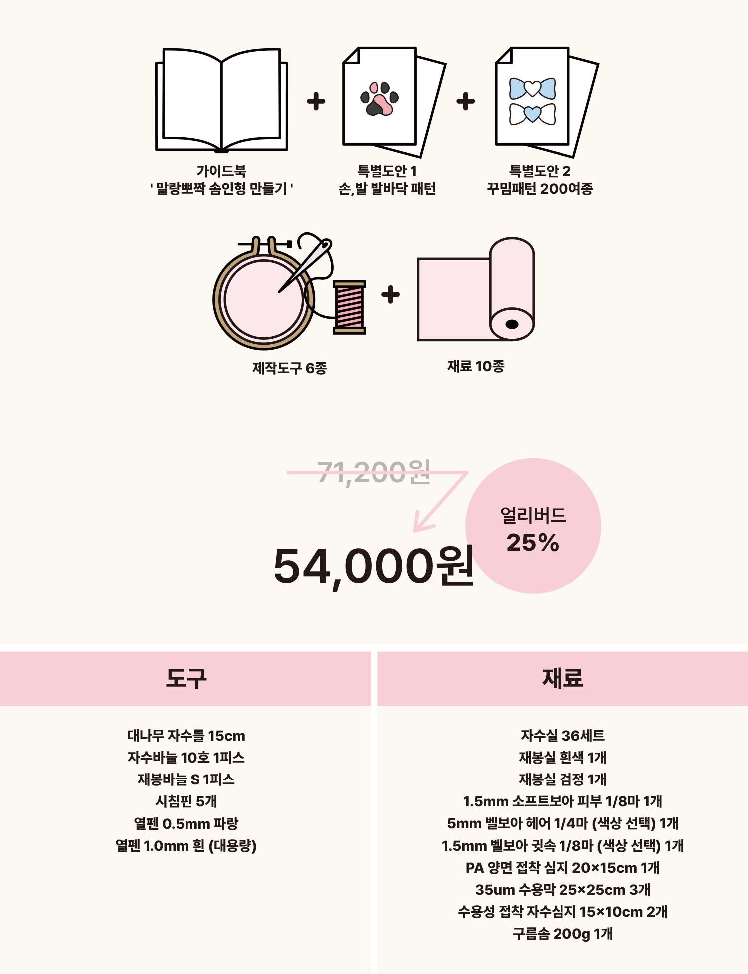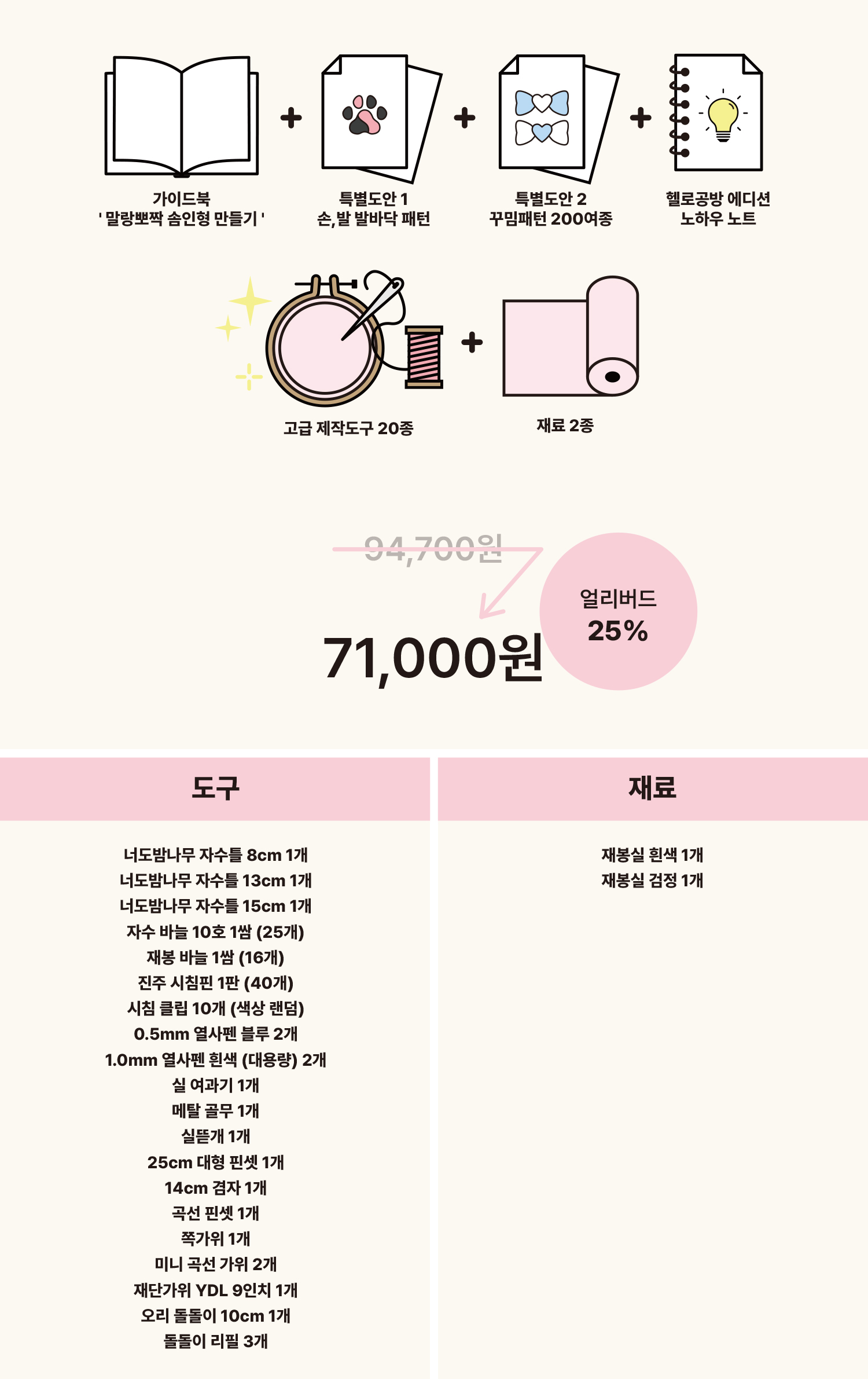 가이드북에 맞춰 필요한 재료와 도구를 패키지로 준비했다는 점입니다.
