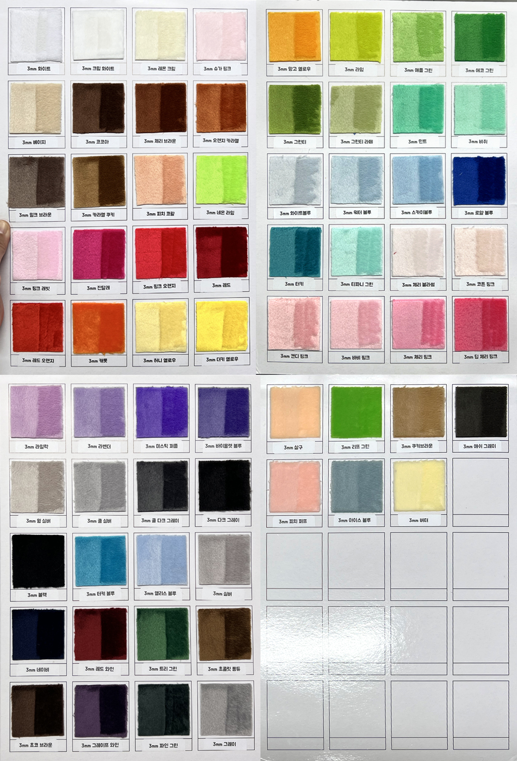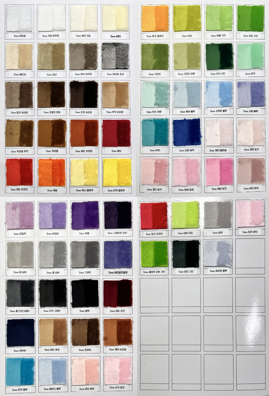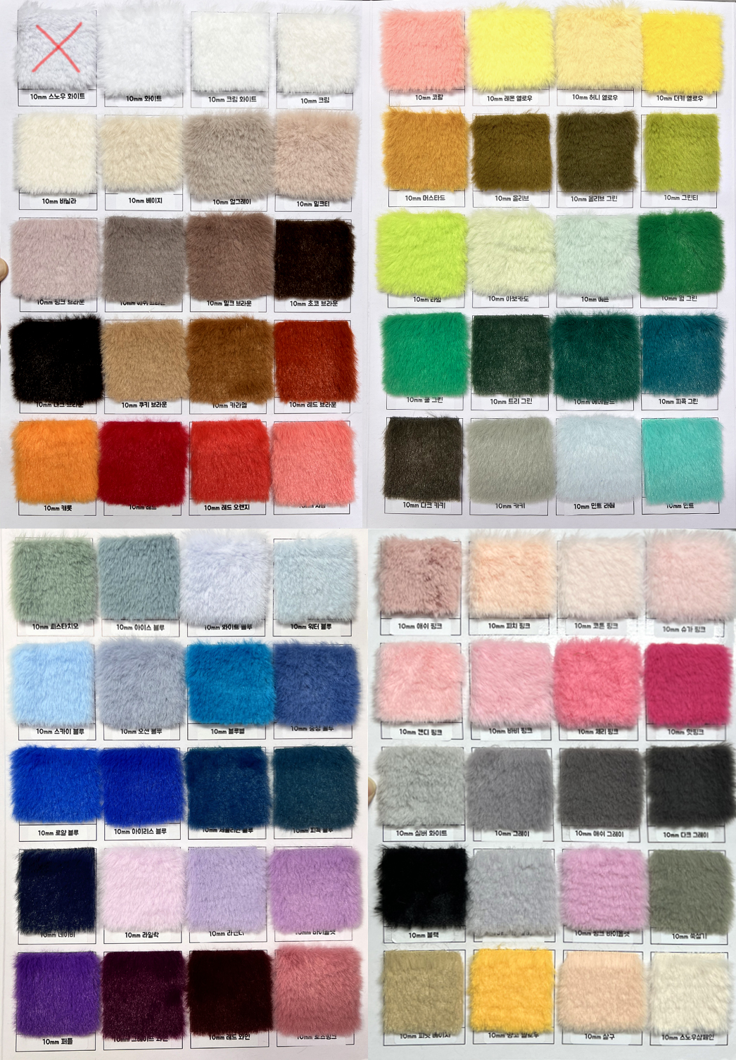 1.5mm, 3mm, 5mm 벨보아, 10mm 밍크, 40mm 롱파일 헤어 원단