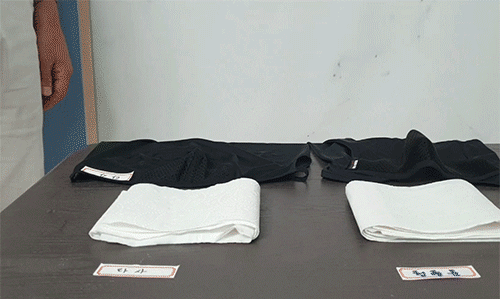 [ 飛沫や汗が染み込む一般的なマスク ]