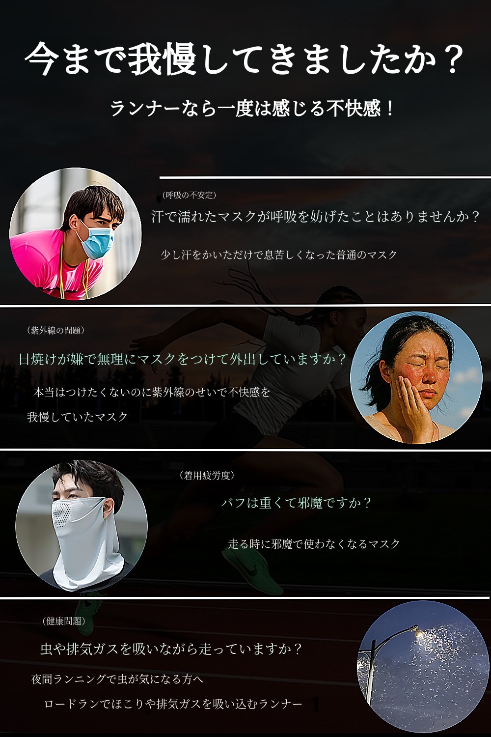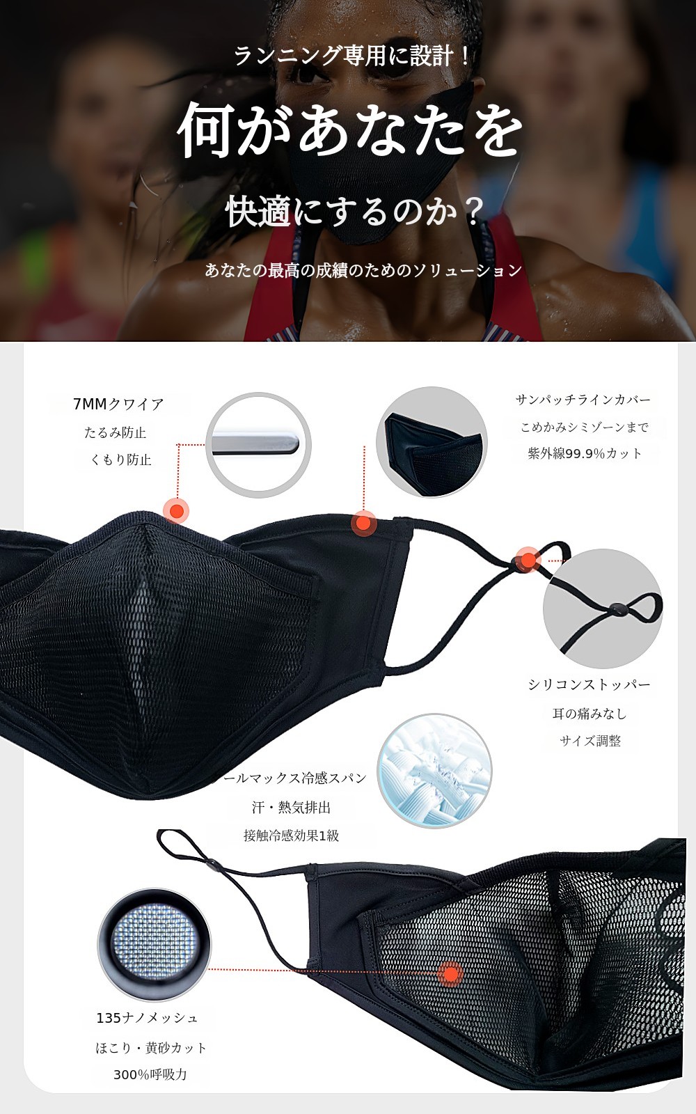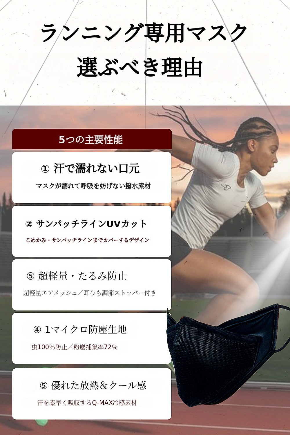ランナーの息苦しさなしでUVと微細粉塵 を遮断