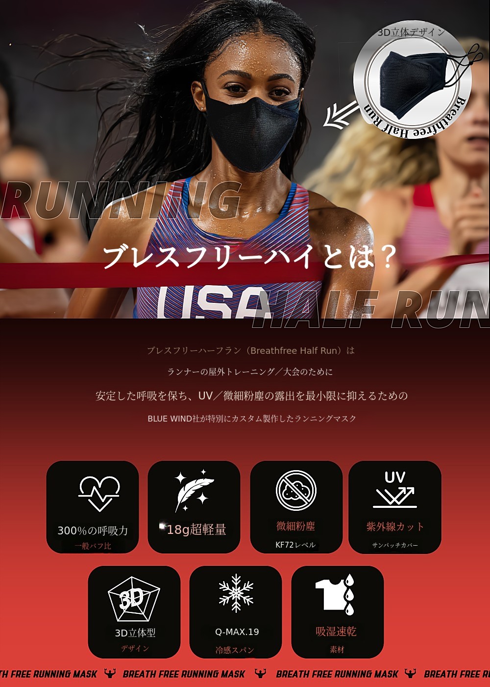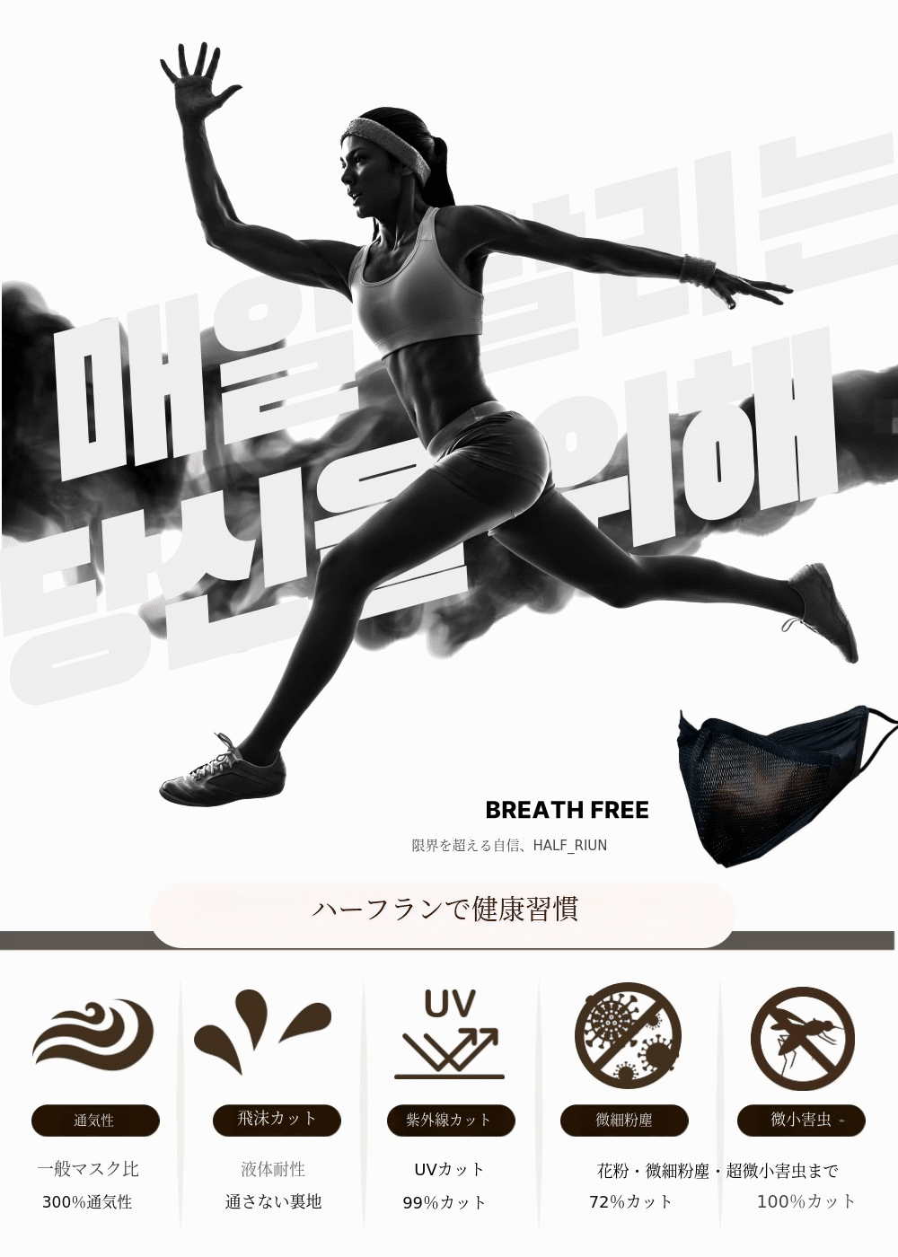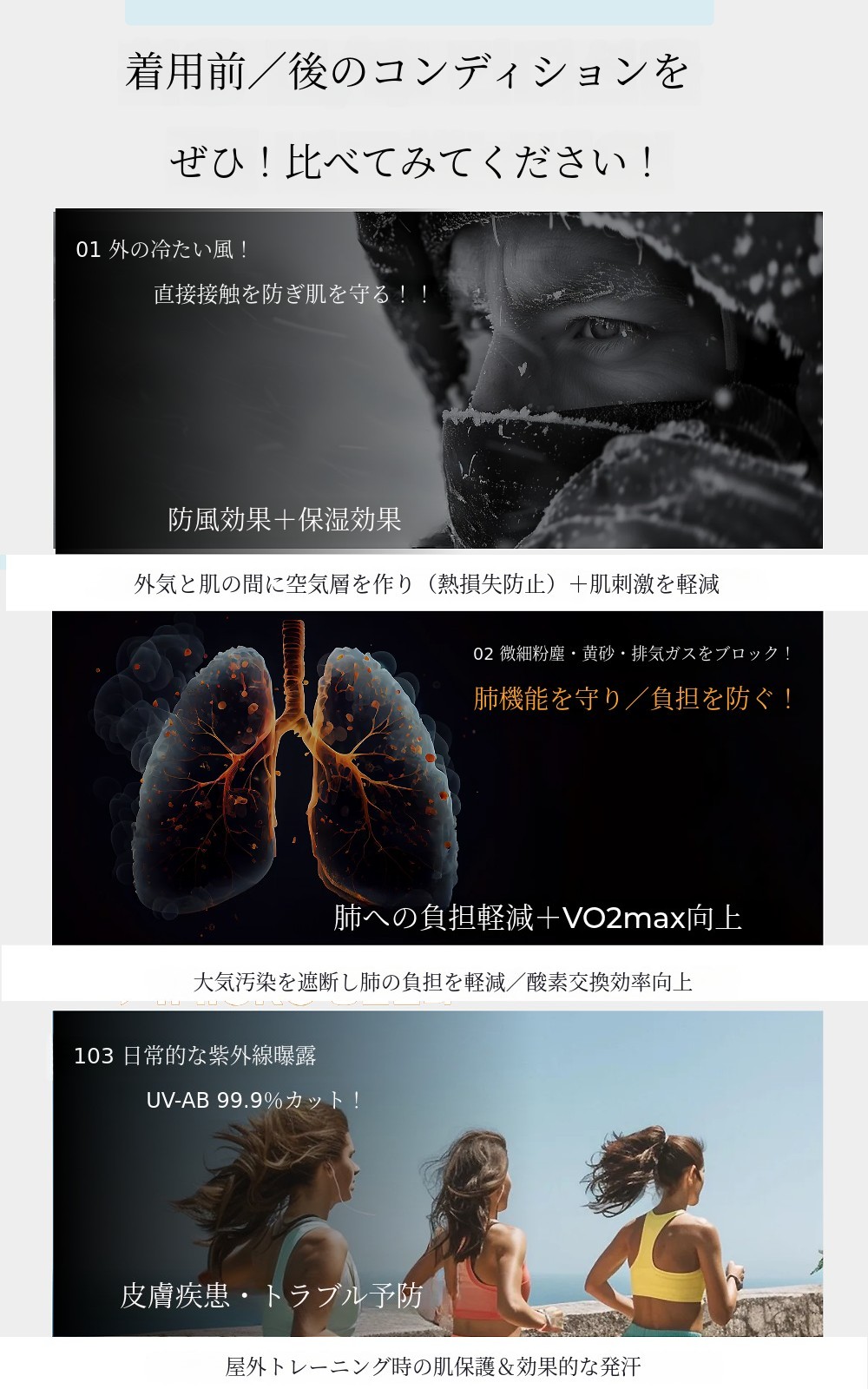 ランナーの息苦しさなしでUVと微細粉塵 を遮断