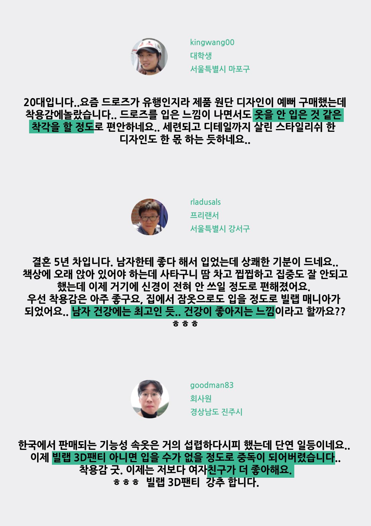 그리고 앵콜펀딩은, 서포님들의 그레이 색상 팬티의 신축성과 사이즈에 대한 따뜻한 피드백,