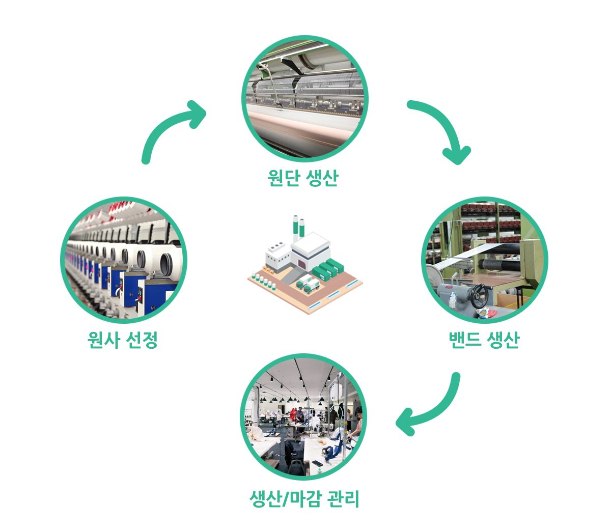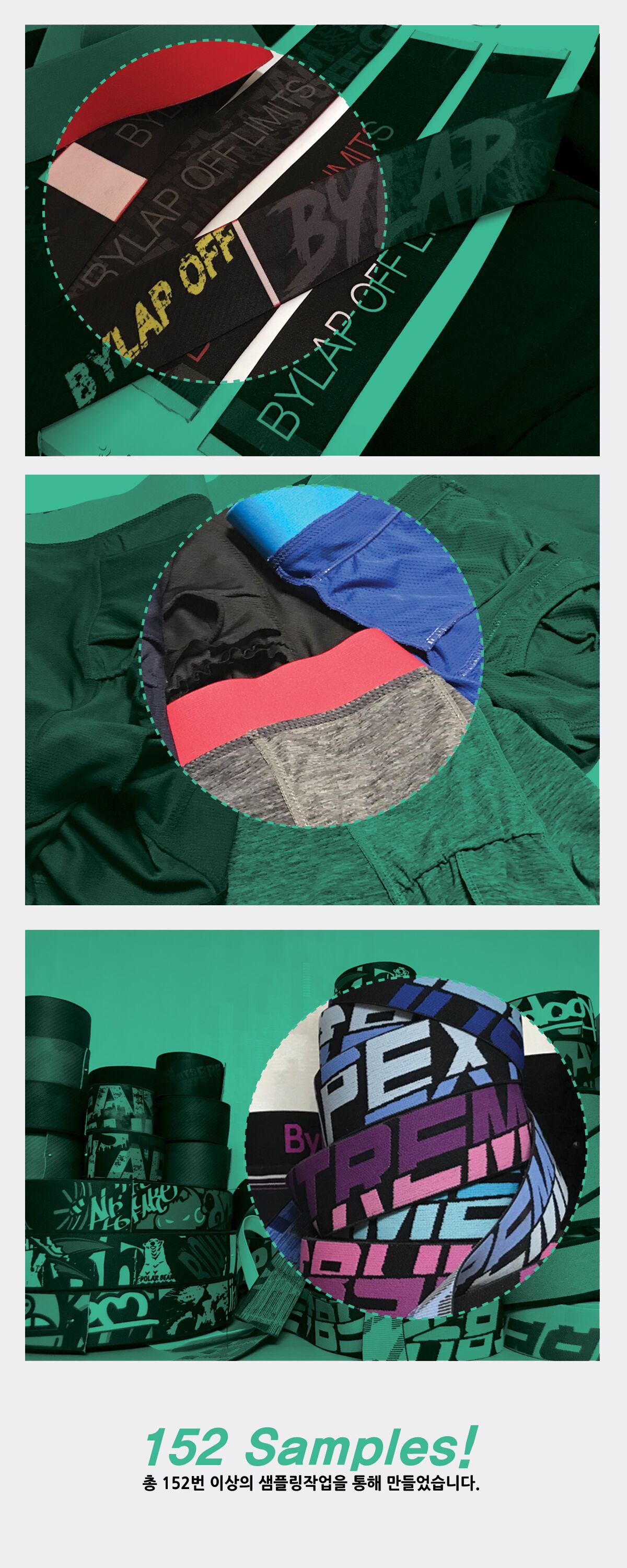 - 원단 생산 : 몸에 하루종일 가장 밀착해 있는 팬티의 특성 상, 원단의 탄성 감촉 등 고려해야 하는 요소가 일반 섬유에 비해 월등히 많습니다. 이 때문에 기성 원단을 사용하지 않고 직접 고기능 원사를 사용하여 최적의 원단을 생산하고 그 과정을 꼼꼼하게 관리합니다.