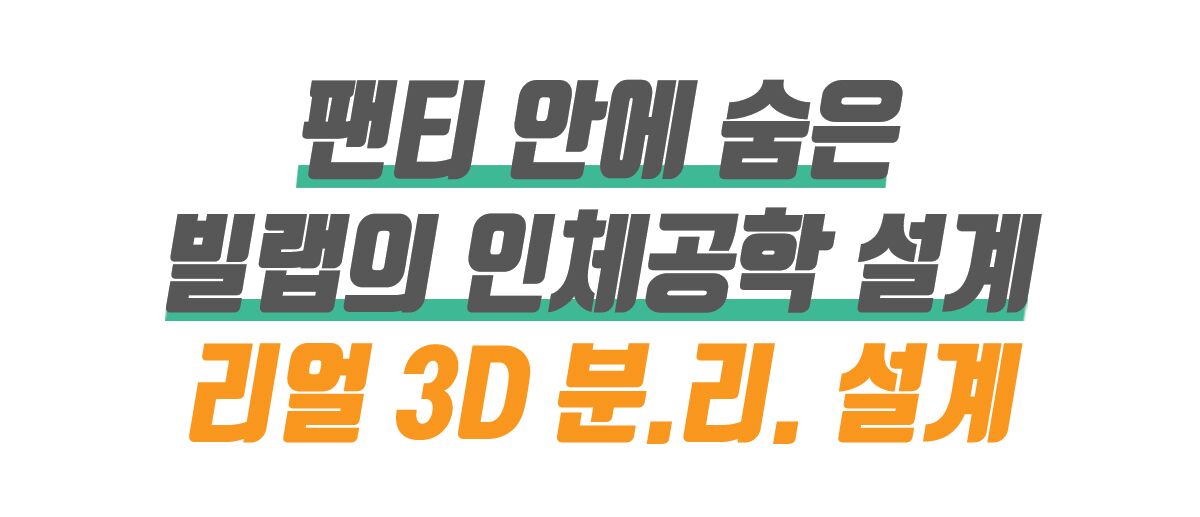 비록 작은 팬티 한장이지만 기존처럼 단순한 패턴 몇개로 만들면 납작하게 되고 입체적인 소중이를 위한 건강한 환경을 만들 수 없습니다. 그래서 빌랩 리얼3D팬티는 내부 구조를 mm 단위까지 세심하게 고려하여정밀하고 세분화된 인체공학적 3D 패턴으로 설계하였습니다. 이를 통해 가장 민감하고 소중한 중심부를 신체 구조에 따라 자연스럽게 보호할 수 있도록 하였습니다.