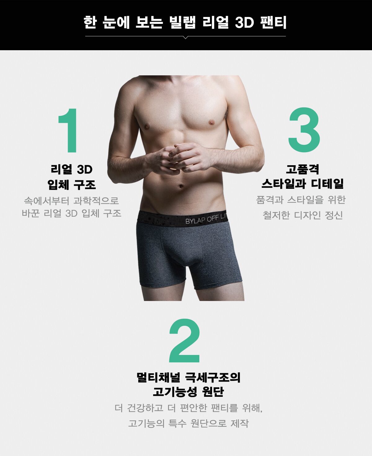 안 입은 것보다 더 건강한, 더 편안한 팬티를 만들기 위해, 속에서부터 과학적으로 리얼 3D 입체 구조로 확 바꿨습니다.