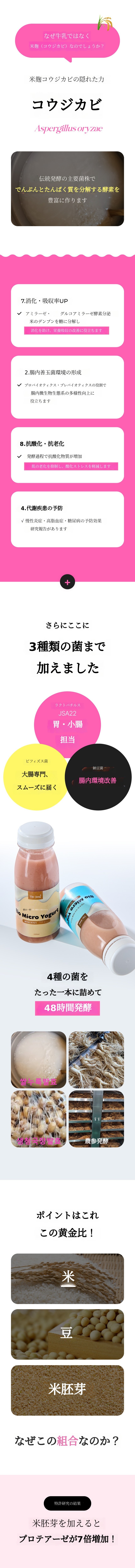 - 胃の乳酸菌+大腸のビフィズス菌+納豆菌(バチルス・サブチリス)+米麹の黄麹菌発酵