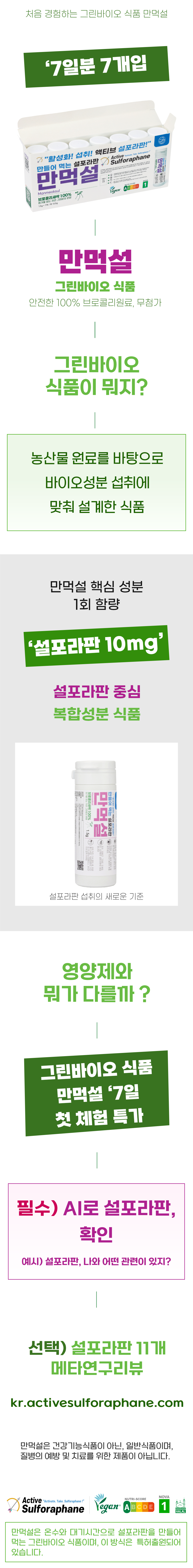 1. 🥦 グリーンバイオ設フォラファン食品 - 設フォラファン10mg高含有の複合成分食品です 2. ⏳ 7日間の体験ルーティン - 7日分の小分けで簡単に摂取可能です 3. 🎁 ワディズ限定特典 - ヨーグルトブースター付き無料配送です