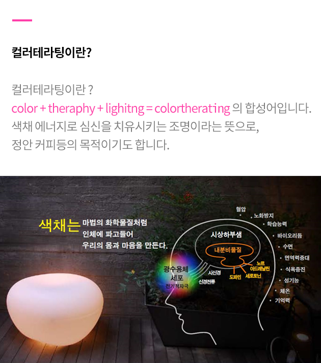 휴대폰 무선충전 + 컬러테라팅 특수조명[심신안정효과]