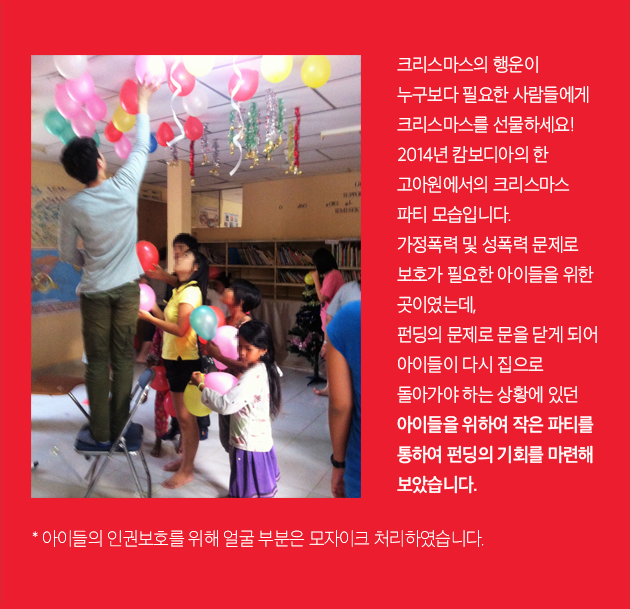 (예) 홀로 추운 겨울을 보내고 계시는 000할아버님께 크리스마스 파티와