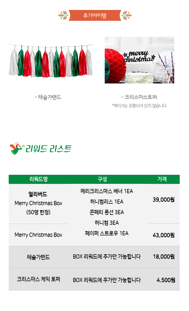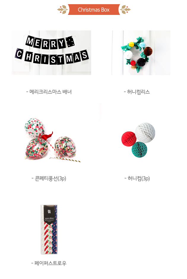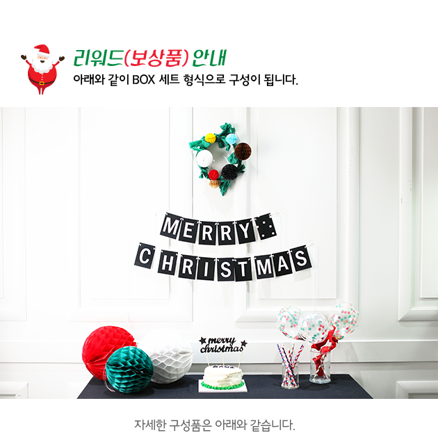 크리스마스 배너와 콘페티풍선, 테슬가렌드 등은