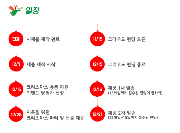 3. 상품 발송은 12월 9일까지 펀딩하시는 분들에 한하여 1차로 12월 16일