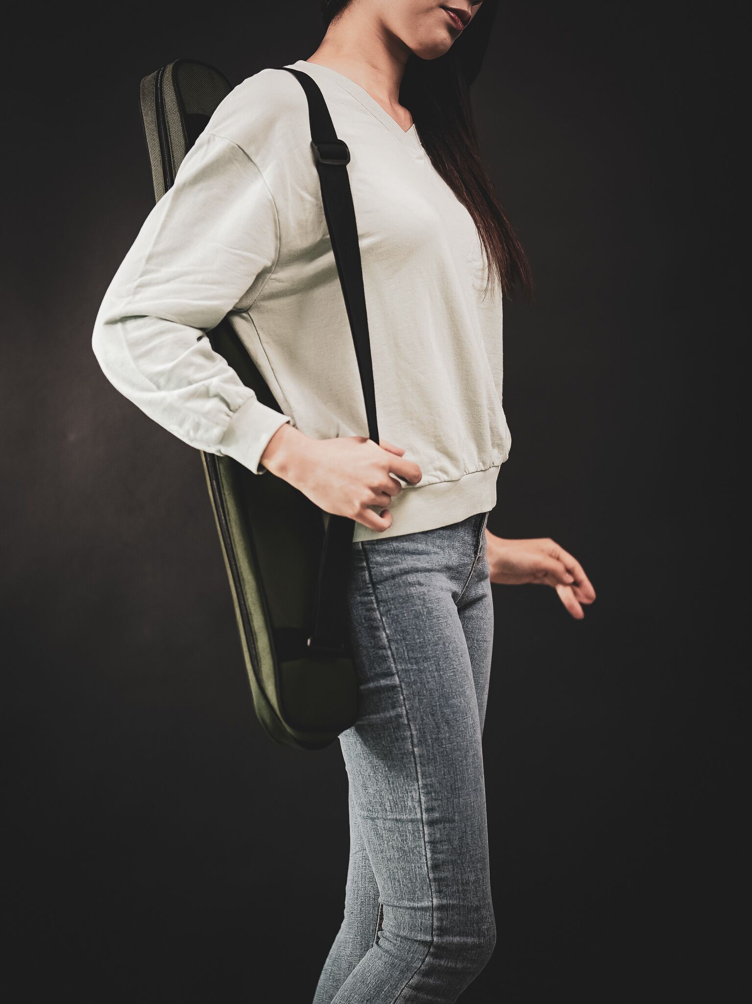 안정적인 보관과 이동을 위한 카키색 가방