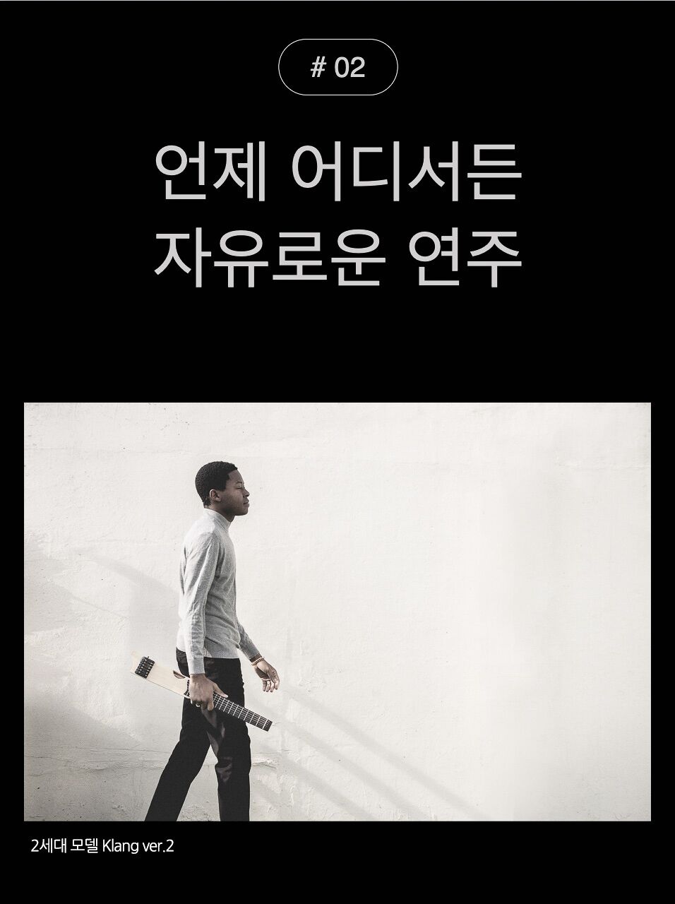 누아르는 꼭 특별한 순간에만 함께할 수 있는 기타가 아닌 언제 어디서나 편안하게 여러분 곁에 함께할 수 있는 기타입니다. 다가올 일상의 회복의 순간을 klang과 함께 해보세요.