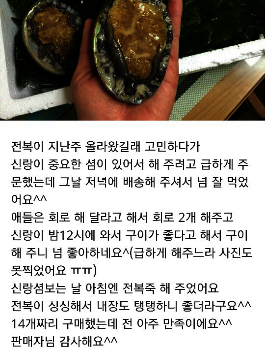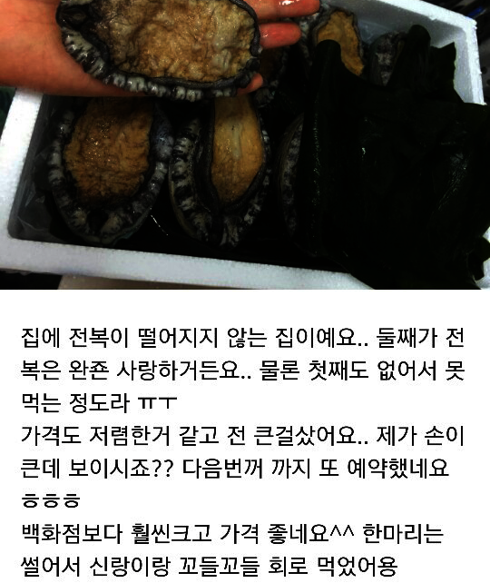 제 주변 분들께서 전복을 받아보시고