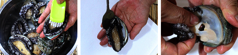 (이 때 칼을 사용하시면 전복에 손상이 갈 수 있습니다.)