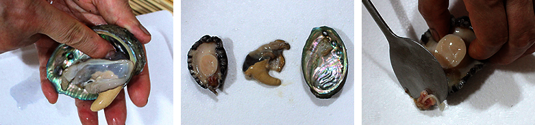 5. 전복 패각으로부터 몸체와 내장을 분리한 모습입니다.