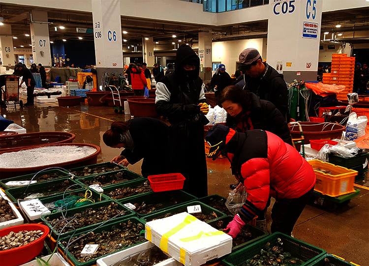 저희 장모님은 일요일을 제외한 매일 새벽 4시 30분마다 노량진 수산 시장에서 진행되는 전복 경매에 참가하십니다. 신선하고 양질의 전복을 고르기 위해서는 부지런해야 합니다. 알 수 없는 긴장감이 맴돌지만 35년간 진행해온 노하우로 자연~스럽게 신선한 전복을 낙찰받으신답니다.