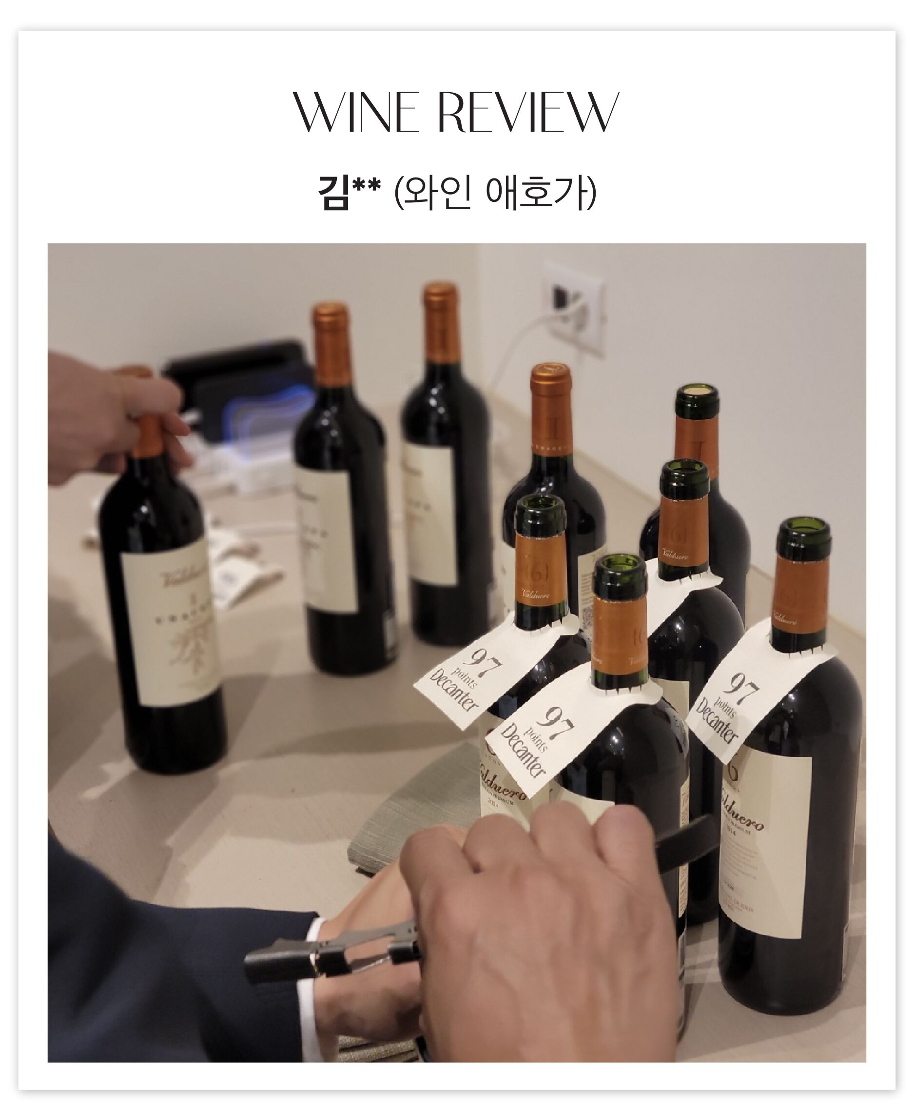 미슐랭 3스타 레스토랑 Top 3 소믈리에들의 블라인드 테이스팅 결과에서 1위 로마네 꽁띠, 2위 발두에로 식스 아뇨스 Valduero 6 Años 와인이 당당하게 위엄을 발휘했다고 합니다. 와이너리 오너인 캐롤리나 가르시아 발두에로씨가 하신 말씀이 맴도네요! "발두에로 와이너리는 비평가를 위해서 와인을 만들지 않습니다. 발두에로 와이너리는 마시는 사람들을 위해서 와인을 만듭니다."