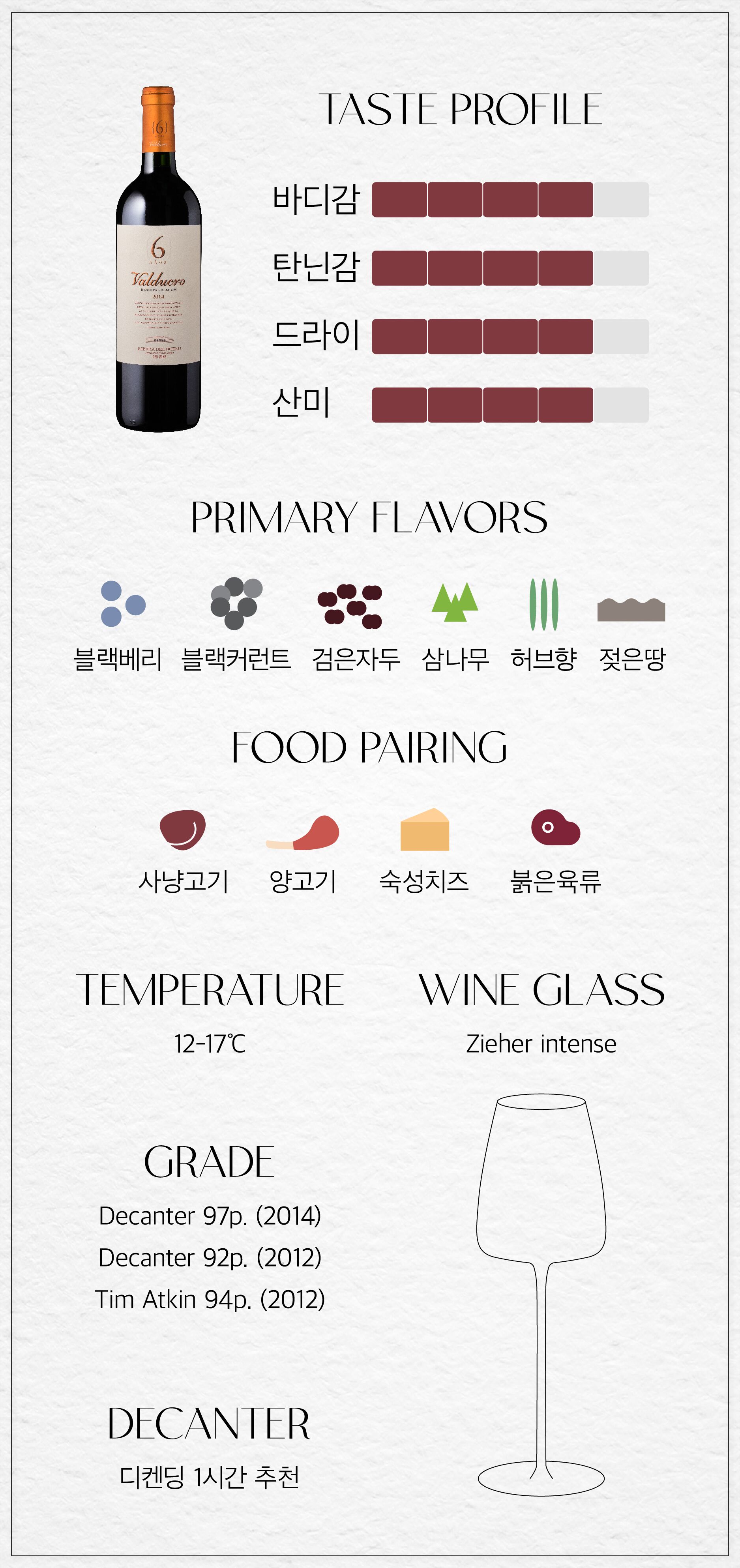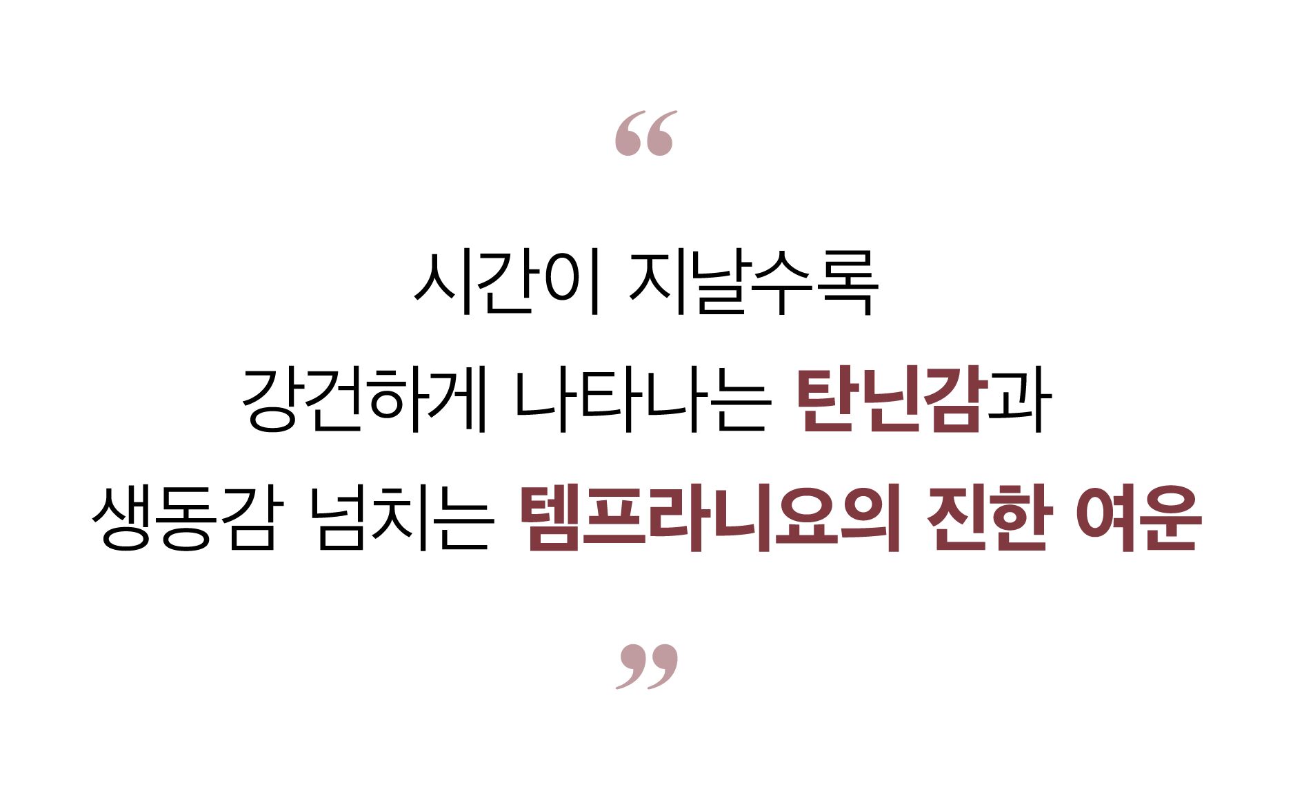 - 6년간의 오랜 숙성으로 혀를 감싸는 실크 같은 탄닌이 특징