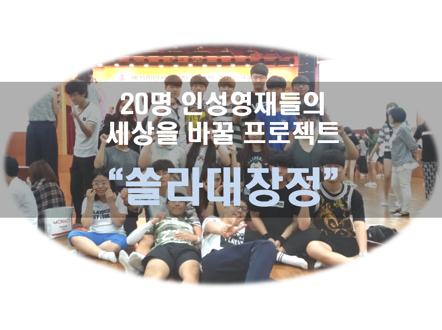 저희는 17~19세까지의 대한민국 청소년들로 이루어진 세상의 꿈과 희망이 되고 싶은 인성이 바르고 창의력있는 영재가 되고 싶은 인성영재를 도전하는 청소년들입니다.