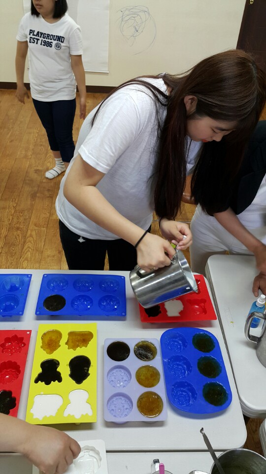 →직접 EM비누를 만드는 모습^^