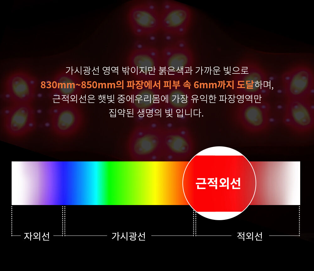 고출력 근적외선LED가 피부 깊숙이 도달되어 마사지 효과, 온열효과를!