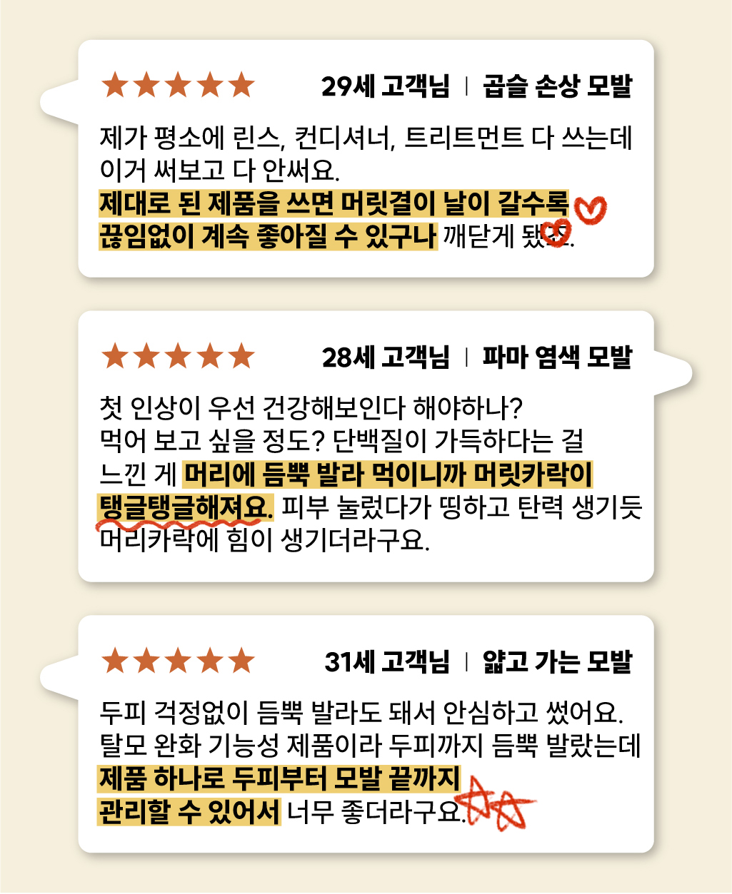 모발 속 단백질은 쏙 채워줘요.