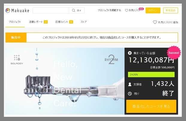 올해 5월 일본 크라우드 펀딩 '마쿠아케'서 1억 2천만원의 펀딩액을 달성한 "솔라데이 리듬 2"