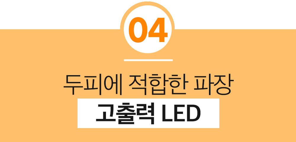 이지엘이 채택한 LED 출력량은일반적인 LED 보다 훨씬 깊게 투과됩니다. 두피의 상태를 개선해줄 수 있는 고출력 LED 소자가 두피 깊숙한 곳까지침투합니다.