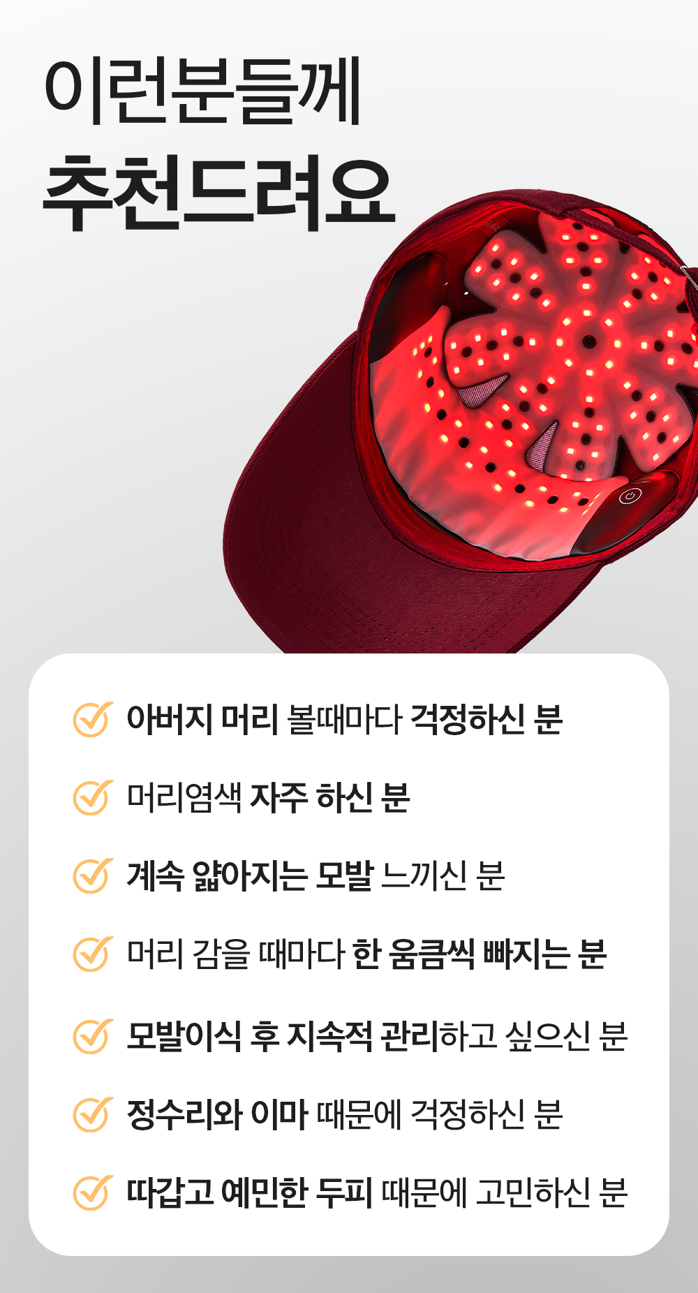 오히려 두피 속에서는 열을 주어, 자극을 시켜주어야만 건강해질 수 있죠! 이지엘 LED는 딱 그부분을 공략합니다.
