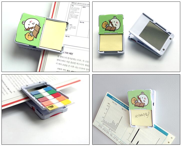 _ 책을 읽거나 서류정리시 정말 편리합니다. 좌우 , 앞뒤로 다양한 접착식메모지를 넣어 사용할 수 있어요. 뒷면 유리에 넣는 인덱스필름(포스트잇플레그)는 미포함입니다. 메모집게는 현재 시중에 팔리고 있지 않아 구입하고 싶어도 구입하지 못하는 리워드입니다.
