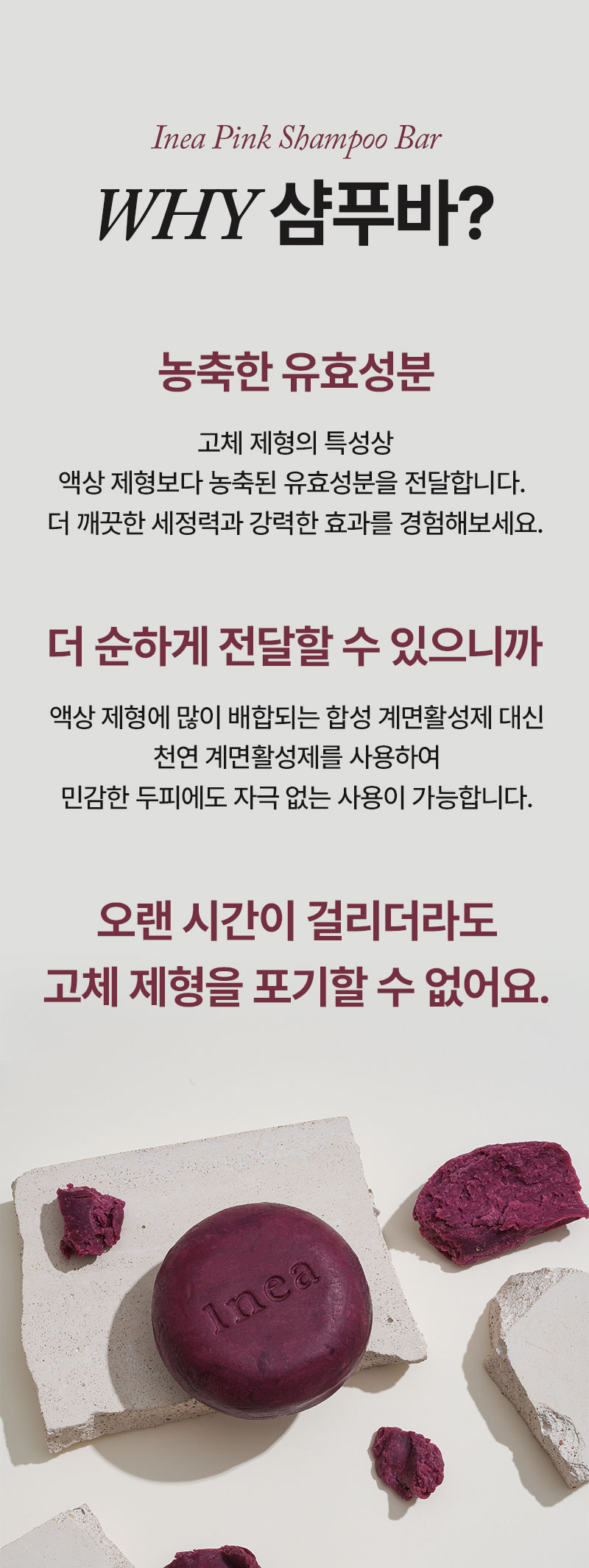 머리카락 걱정 하나 없던 저도 출산 후 후루룩 빠지는 머리카락을 경험했어요. 그러고 보니 가족과 친구…저의 주변 거의 모든 남자분들뿐 아니라 주변 꽤 많은 여성분들이 병원까지 다니실 정도로 탈모에 대한 깊은 고민을 하고 계시더라고요. 건강한 몸에는 건강한 루틴이 제일 중요하지요? ‘가장 기본적인 샴푸, 제대로 할 수 있도록 도와야겠다!’ 하고 저의 사랑하는 가족과 친구들을 위해서 제품을 기획하고 개발하게 되었습니다.
