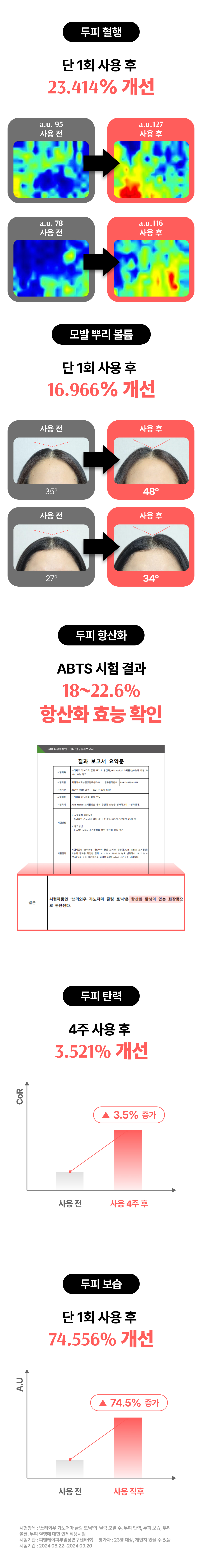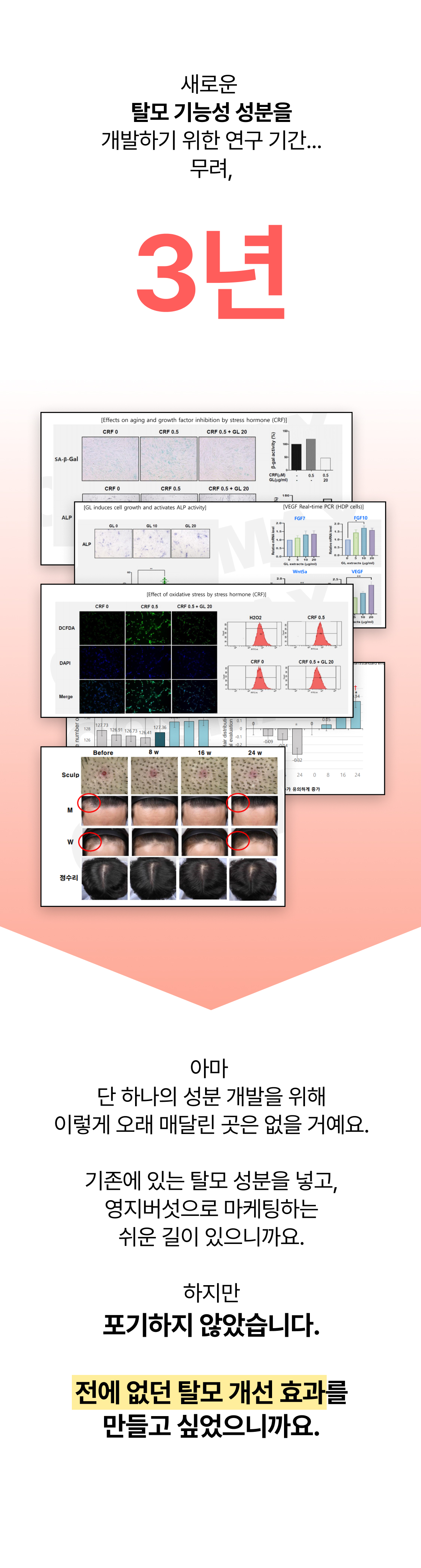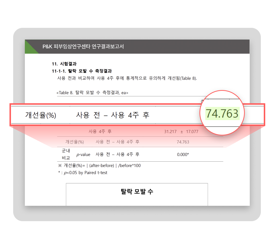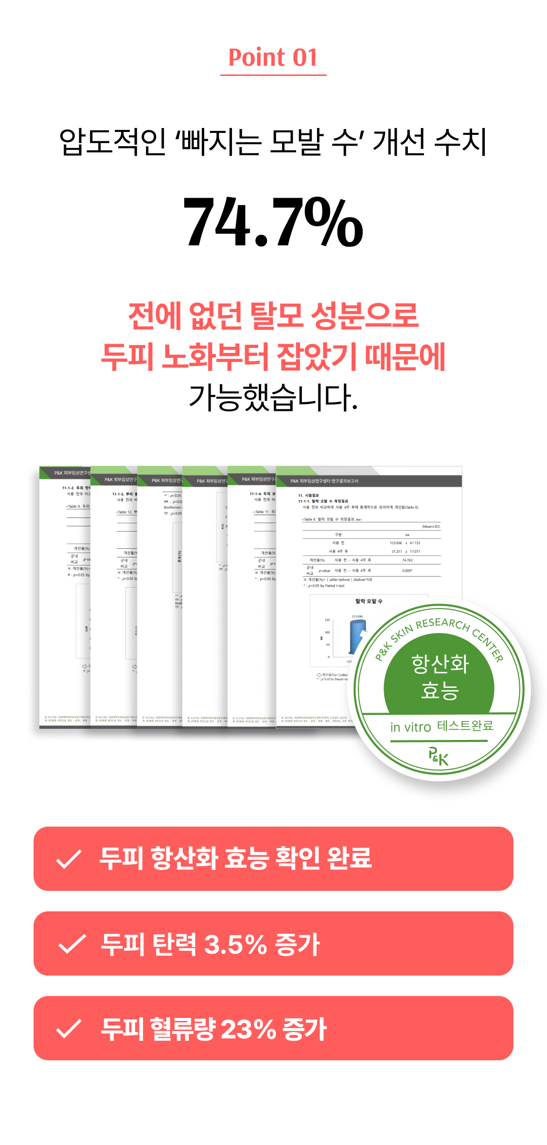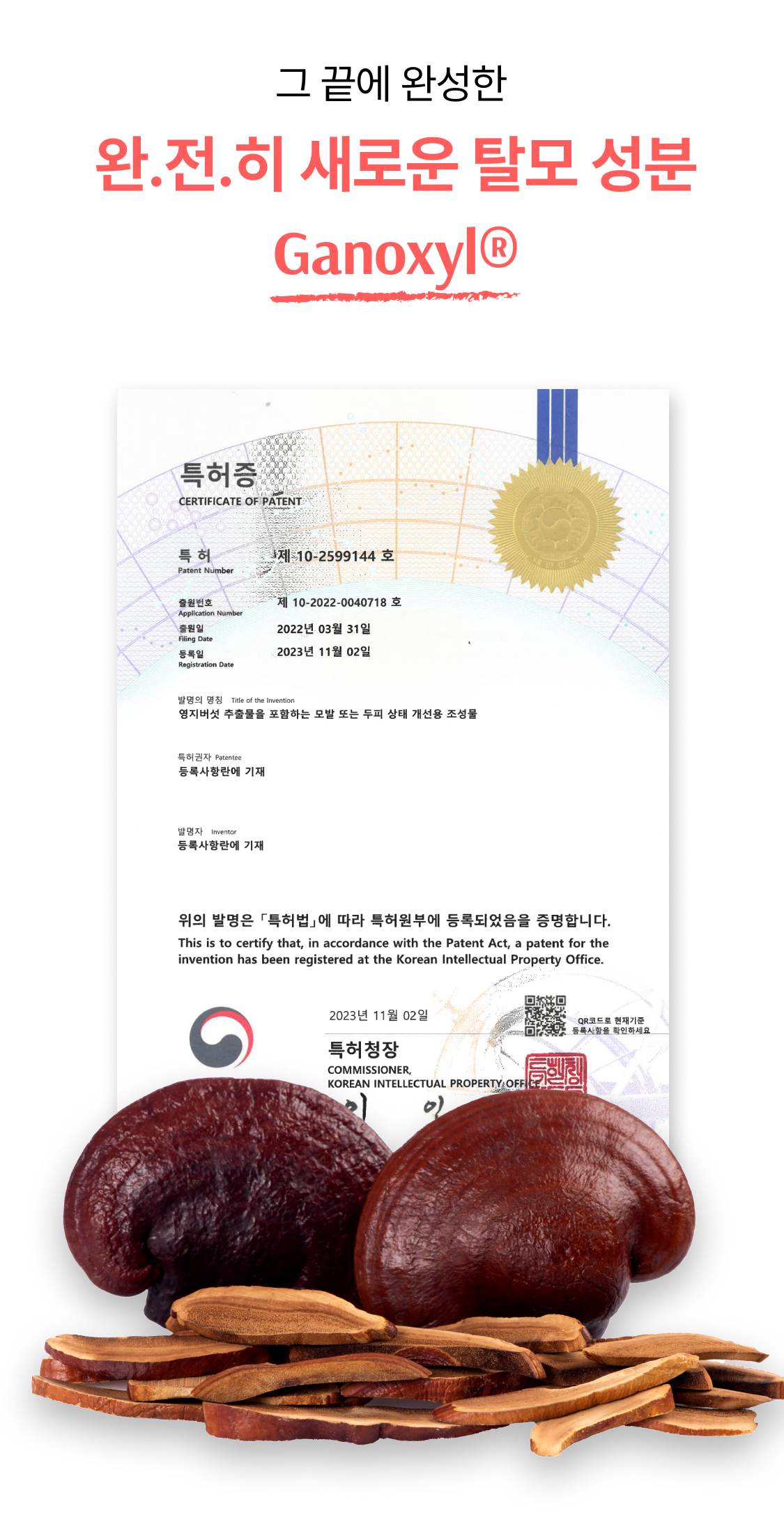 3년의 연구 끝에 개발! 연구원도 놀란 압도적 모발빠짐 개선 수치 74.7% 전에 없던 '영지버섯' 활용 탈모 특허 성분으로 빽빽해지는 두피를 마음껏 누려보세요.