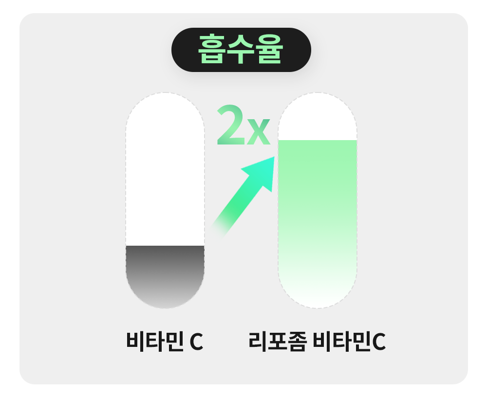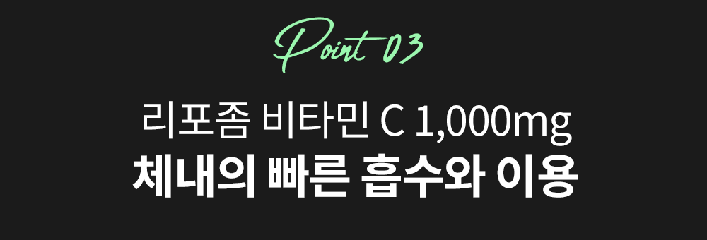 극강의 체내 흡수와 빠른 이용율을 위해 리포좀 형태의 비타민C를 1,000mg 배합하게 되었습니다.