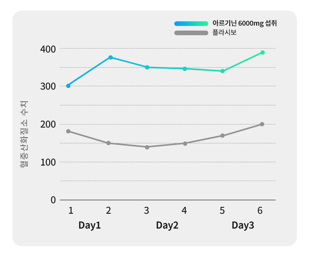→ 노르웨이 식품 안전 과학위원회(VKM) 보고서에 따르면 성인의 경우 ~6,000mg/일은 건강에 부정적인 영향을 미칠 가능성이 없는 것으로 간주하고 있습니다. 아르기닌 추가 섭취는 전문가와 상담 후 복용 바랍니다.