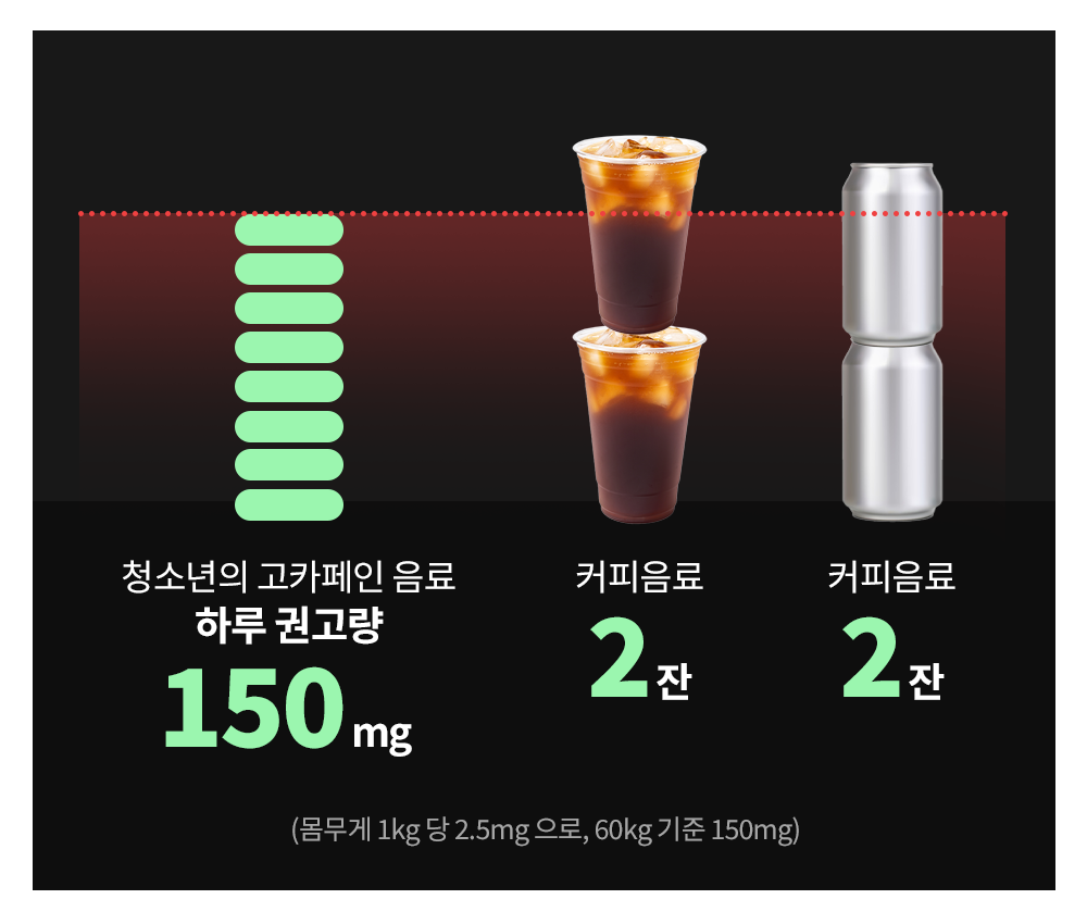 청소년의 고카페인 음료 하루 권고량은 150mg