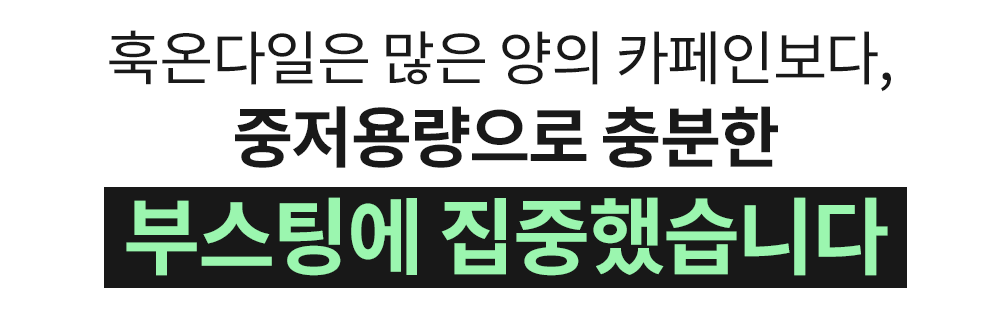 시장의 모든 부스터를 찾아봤습니다. 자극적인 마케팅을 위한 성분들이 서로 고함량 경쟁을 하듯 과도하게 들어있는 제품이 너무 많았습니다. 또 약속한 것처럼 어차피 많이 먹어도 체내에서 모두 배출되는 성분임에도 의미 없이 들어가 있는 불필요한 성분들도 너무 많았습니다. 이런 성분들은 '훅온다일' 에서는 모두 배제하였습니다.