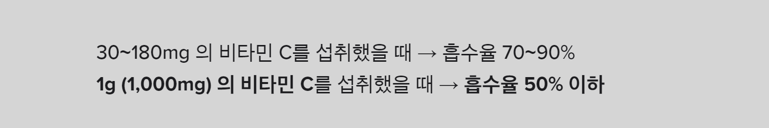 1.비타민C 는 섭취량이 많아질수록 체내 흡수율이 낮아집니다.