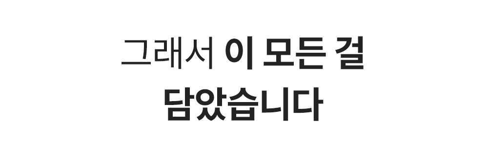 꼭 필요한 성분만, 충분한 함량으로 넣되, 각 성분이 서로 조화롭게 시너지를 내는 것. 그래서 이 부스터 1잔 만으로도 아주 충분한 효과를 체감할 수 있게끔 설계하는 것도 중요했습니다. 그래서 함량을 수십차례 바꿔가며 가장 성분 간의 조합이 좋은 레시피를 만들어냈습니다.