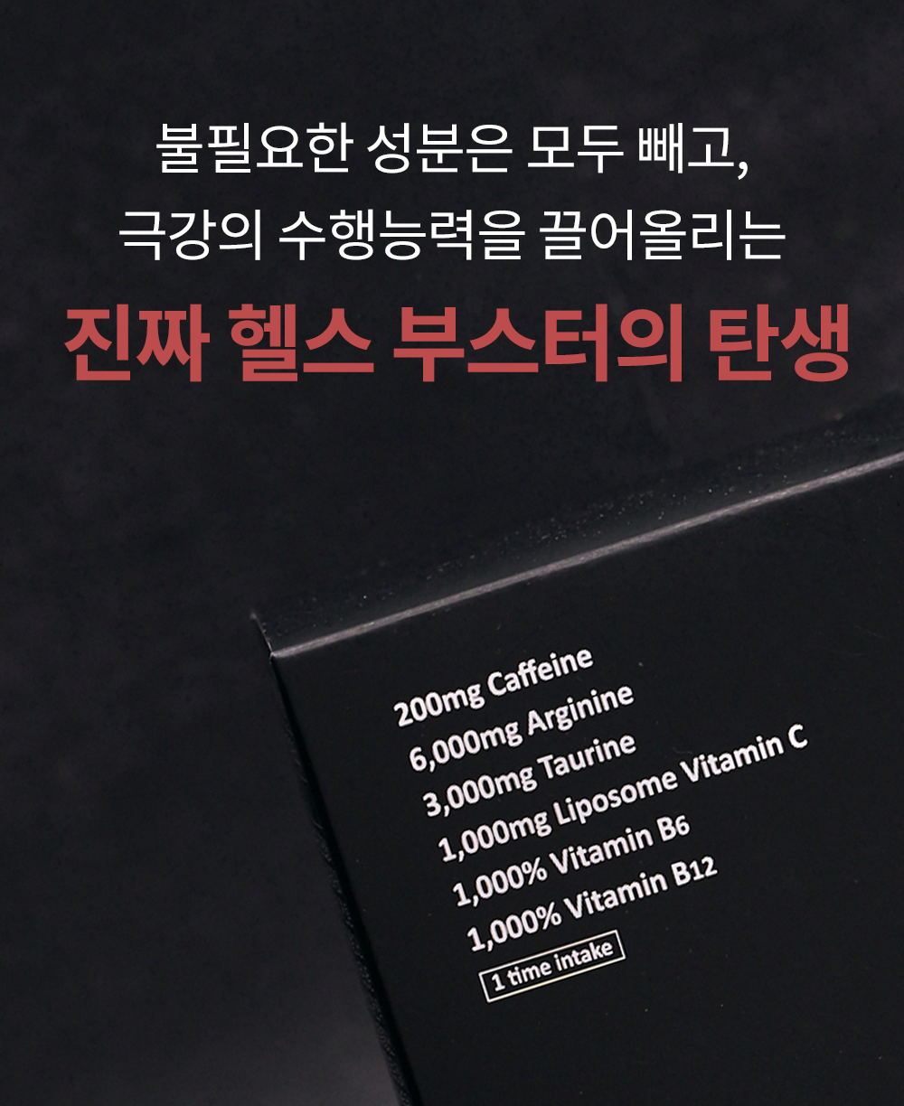 모든 성분과 함량들이 서로 상호작용을 하며, 부스팅할 수 있게 설계했어요. 단 2포만으로 극강의 만족을 느낄 수 있는 부스터를 만들었습니다.