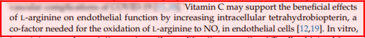 비타민C 는 L-아르기닌을 NO로 산화시키는 데 필요한 보조인자인 테트라 하이드로비옵테린(BH4) 를 증가시킴으로써 L-아르기닌의 유익한 효과를 지지해줄 수 있습니다.