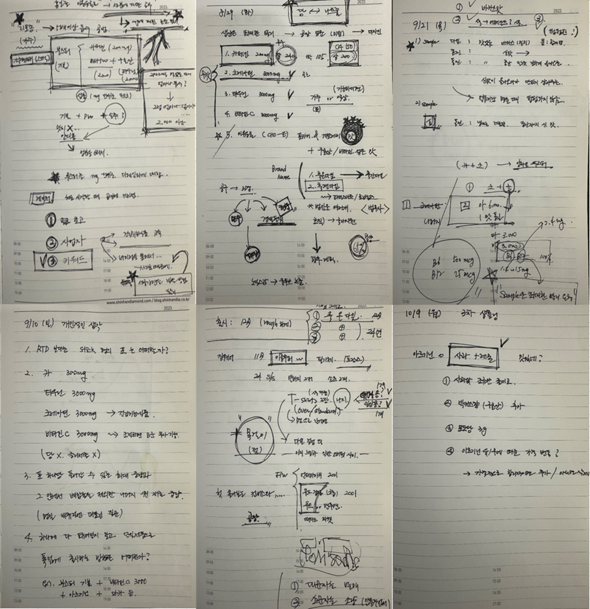 맛이나 성분에 관한 사항들을 항상 기록하여 다음 미팅 혹은 샘플링 때 더 나은 결과물이 나올 수 있었던 것 같습니다.
