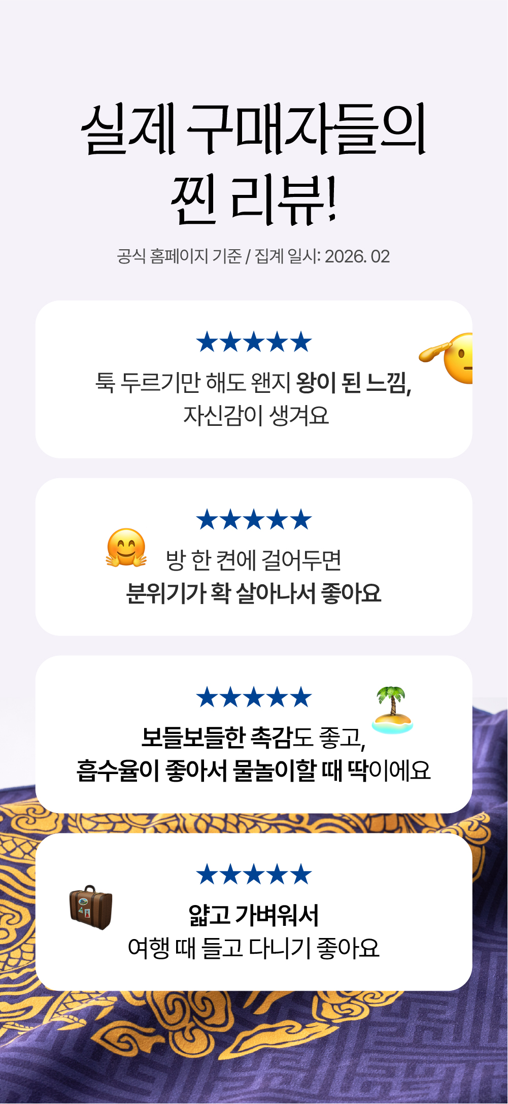 다만 준비된 수량이 충분하지 못해 많은 분들께 곤룡포 비치타올을 소개해 드리지 못했고, 오픈런을 하셨음에도 불구하고, 구매하지 못하신 분들께 늘 송구한 마음이 남아 있었습니다.