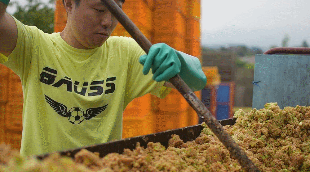 이렇게 맛있는 사과를 모아 가장 먼저 하는 일은 사과 와인을 만드는 일입니다. 14일 동안 사과를 350시간 발효 시켜 진한 와인을 만들어내죠. 물론 사과 와인도 훌륭한 맛이지만, 조금 더 깔끔한 증류주를 만들기 위해서는 이 와인을 증류시켜야 합니다.
